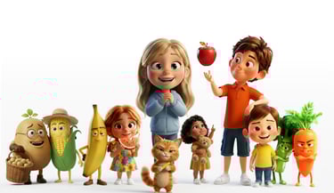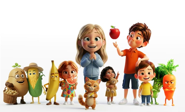 Ele foi criado para aproximar as crianças das frutas e legumes de forma leve, divertida e sem pressão, por meio de histórias encantadoras e atividades afetivas.