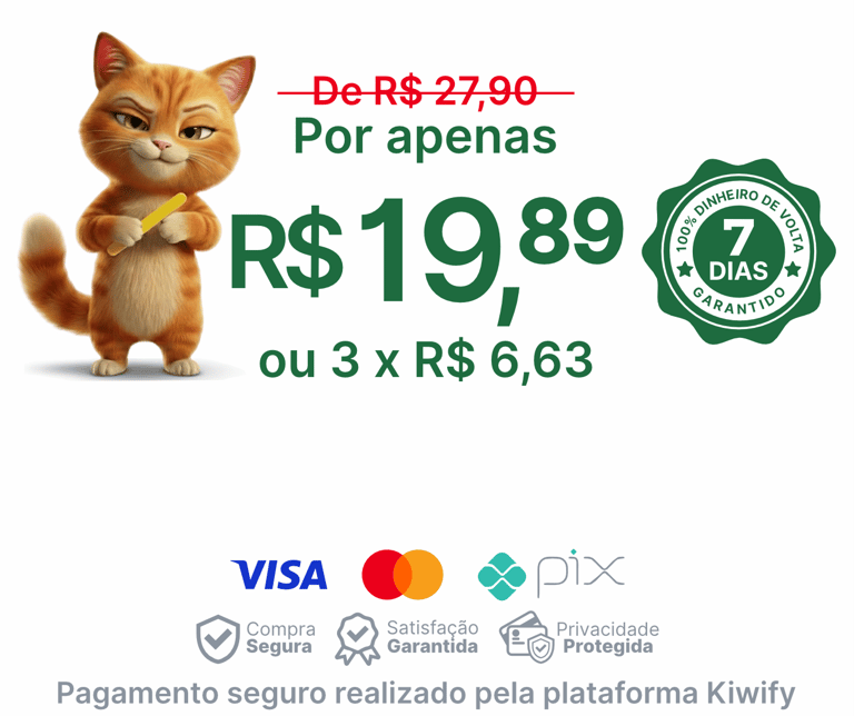 Garantia de 7 dias: se perceber que o material não é para você, basta solicitar o reembolso — simples e sem burocracia.